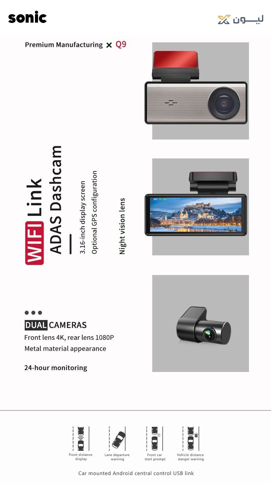 • تصوير بجودة 4K امامي و خلفي 1080: تتميز داش كام سونيك بدقة تصوير مذهلة تصل إلى 4Kامامي و خلفي 1080 مما يضمن لك تفاصيل واضحة ودقيقة في كل تسجيل.